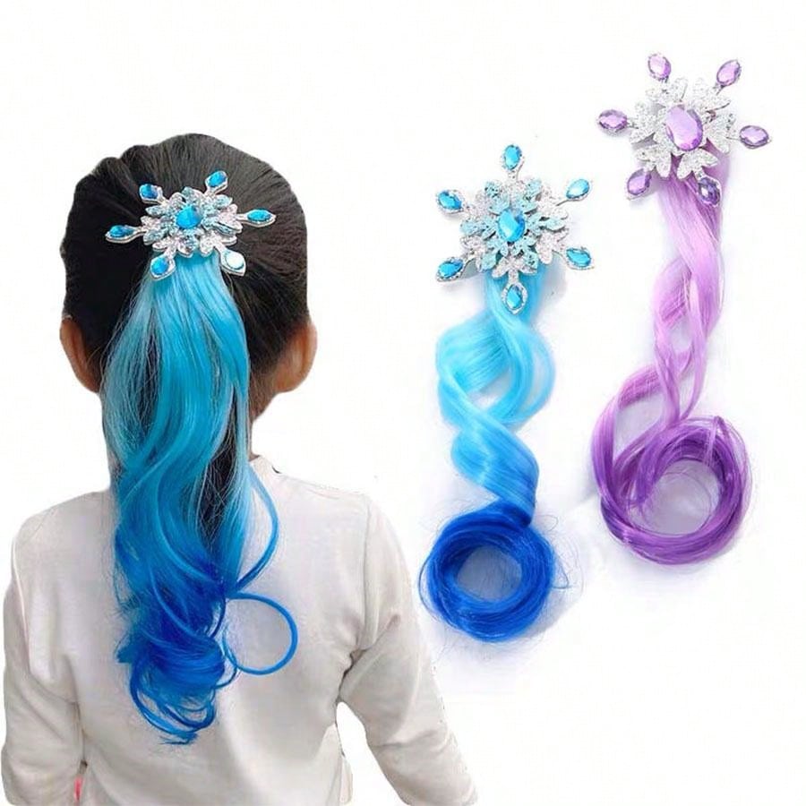 1pc Ice Queen-Inspired Ombre Snowflake Synthetic Hair Extension For Children, Clip-In Hair Accessory