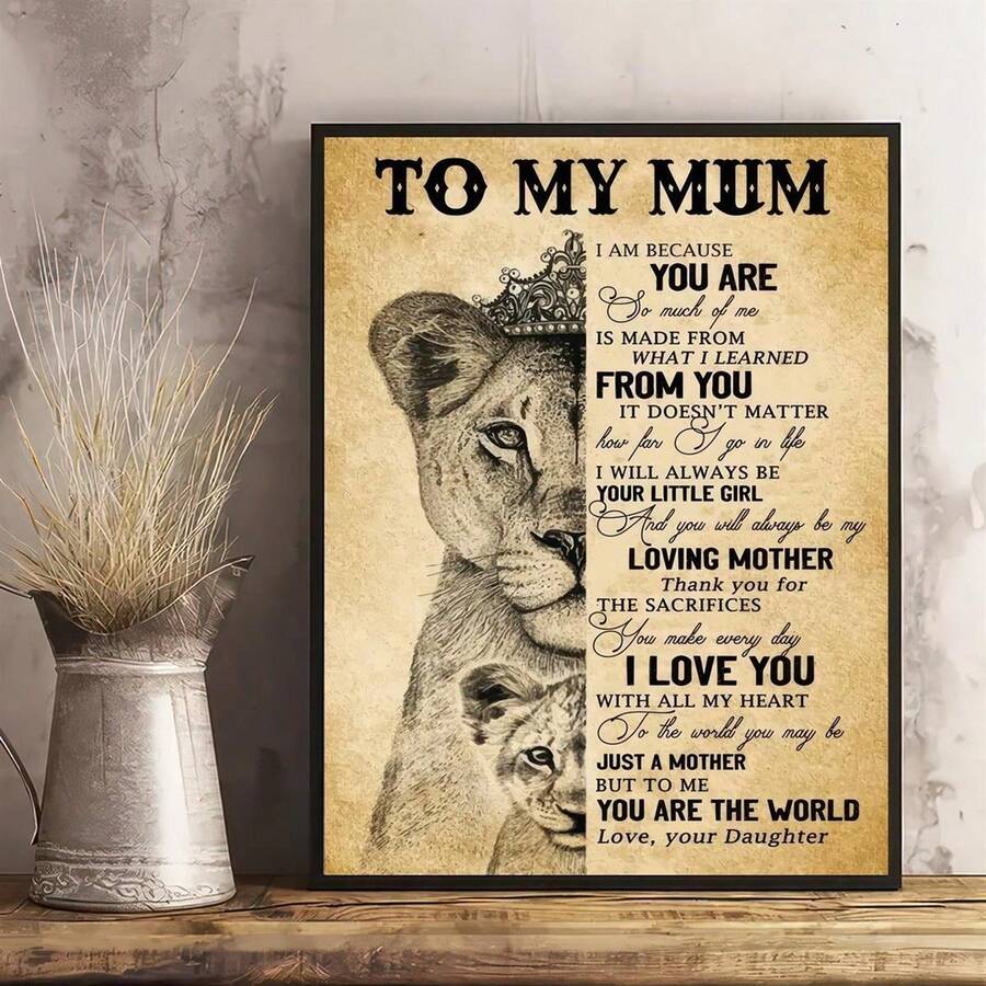 1pc Inspirational Canvas Painting, Lion Painting On Canvas Wall Art, To My Mum I Am Because You Are So Much Of No Me, Artwork Wall Painting For Bathroom Bedroom Office Living Room Home Wall Decor, No Frame