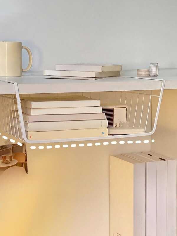 1pc Iron Hanging Basket Desktop Storage Rack With Hook For Student Dormitory, Wall Mounted Storage Rack Under Desk