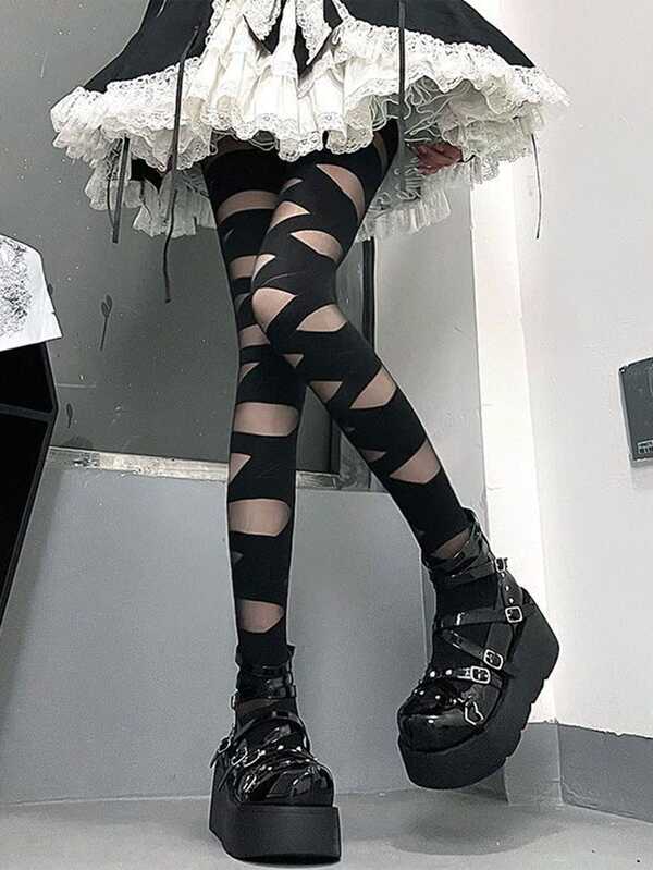 1pc Japanese Style Hollow Out Semi-sheer Pantyhose Suitable For Women