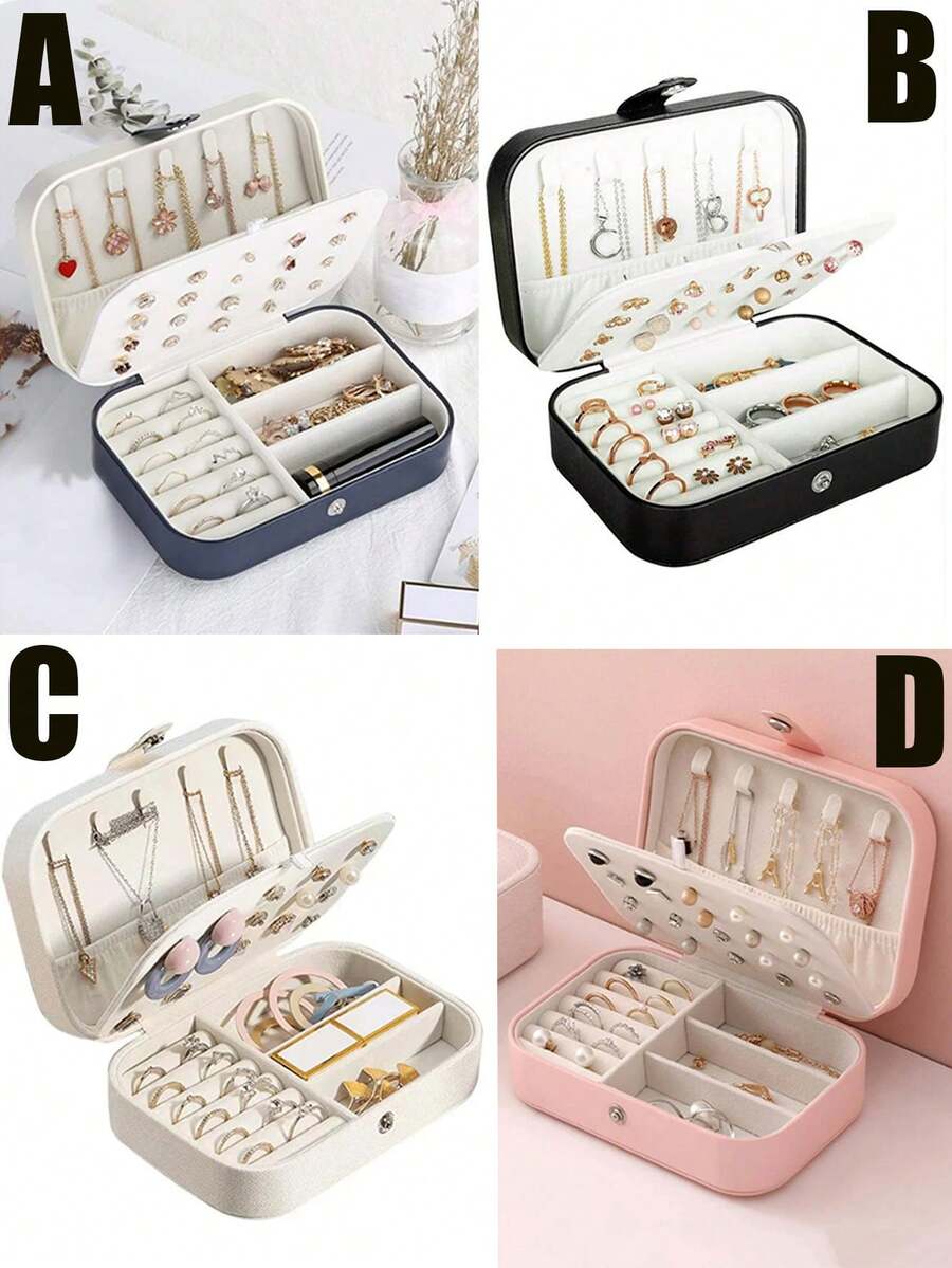 1pc Portable Pu Multiple Layer Jewelry Storage Box, Jewellery Case With Earring Ring Necklace Jewellery Organizer For Storage At Home Or Travel