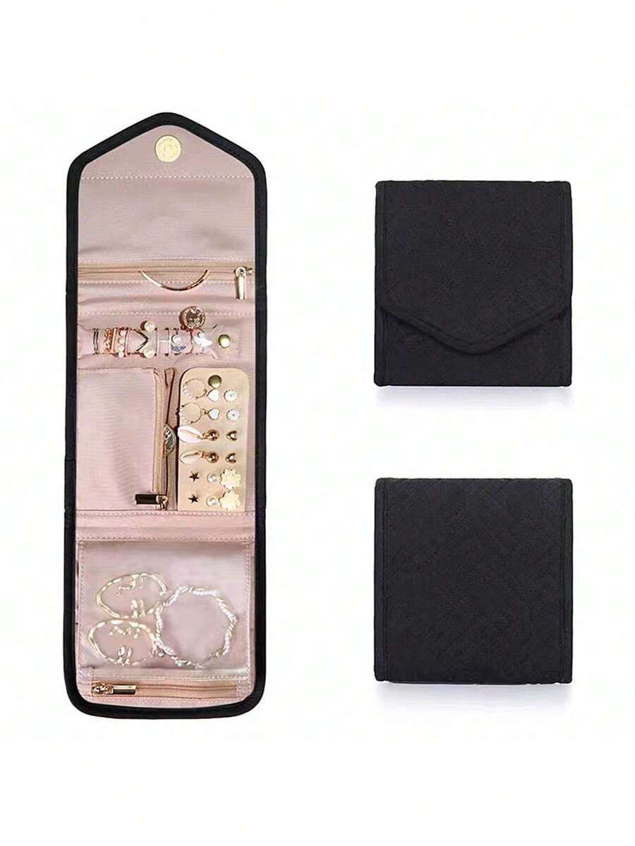 1pc Jewelry Storage Pouch, Faux Velvet Jewelry Organizer Bag, Travel Portable And Foldable, For Storing Jewelry, Earrings, Necklaces, Etc. Black
