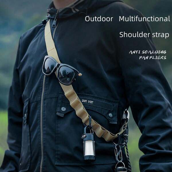 1pc Khaki Multifunctional Outdoor Hanging Clothesline Rope With Black Storage Strap, 24 Holes, For Tent Hanging & Storage