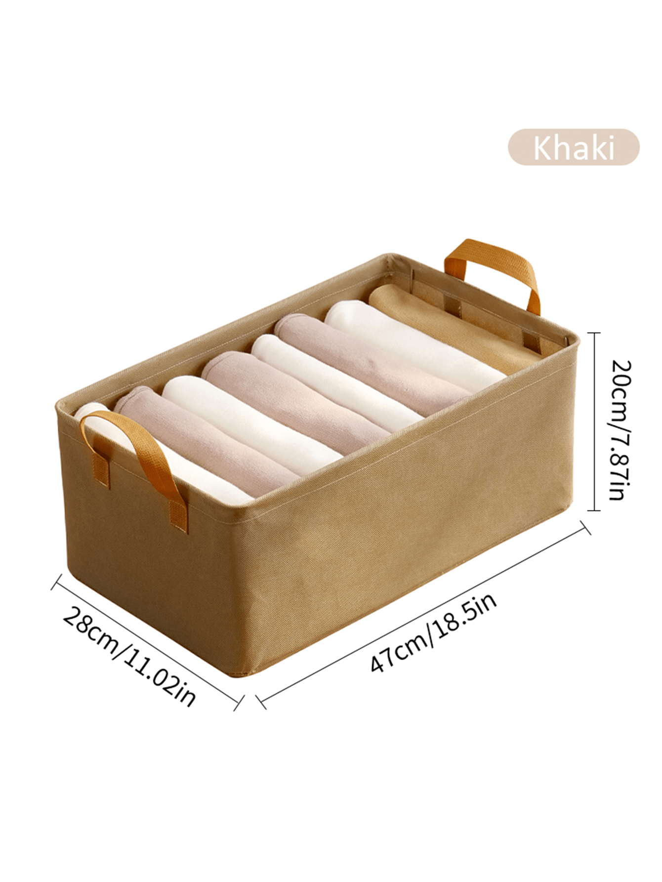 1pc Khaki Non-woven Fabric Storage Bag With Steel Frame, Foldable For Toy/clothing Organization