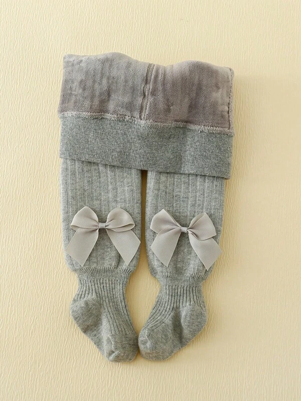 1pc Kids' Bowknot Decorated Fleece Lined Tights