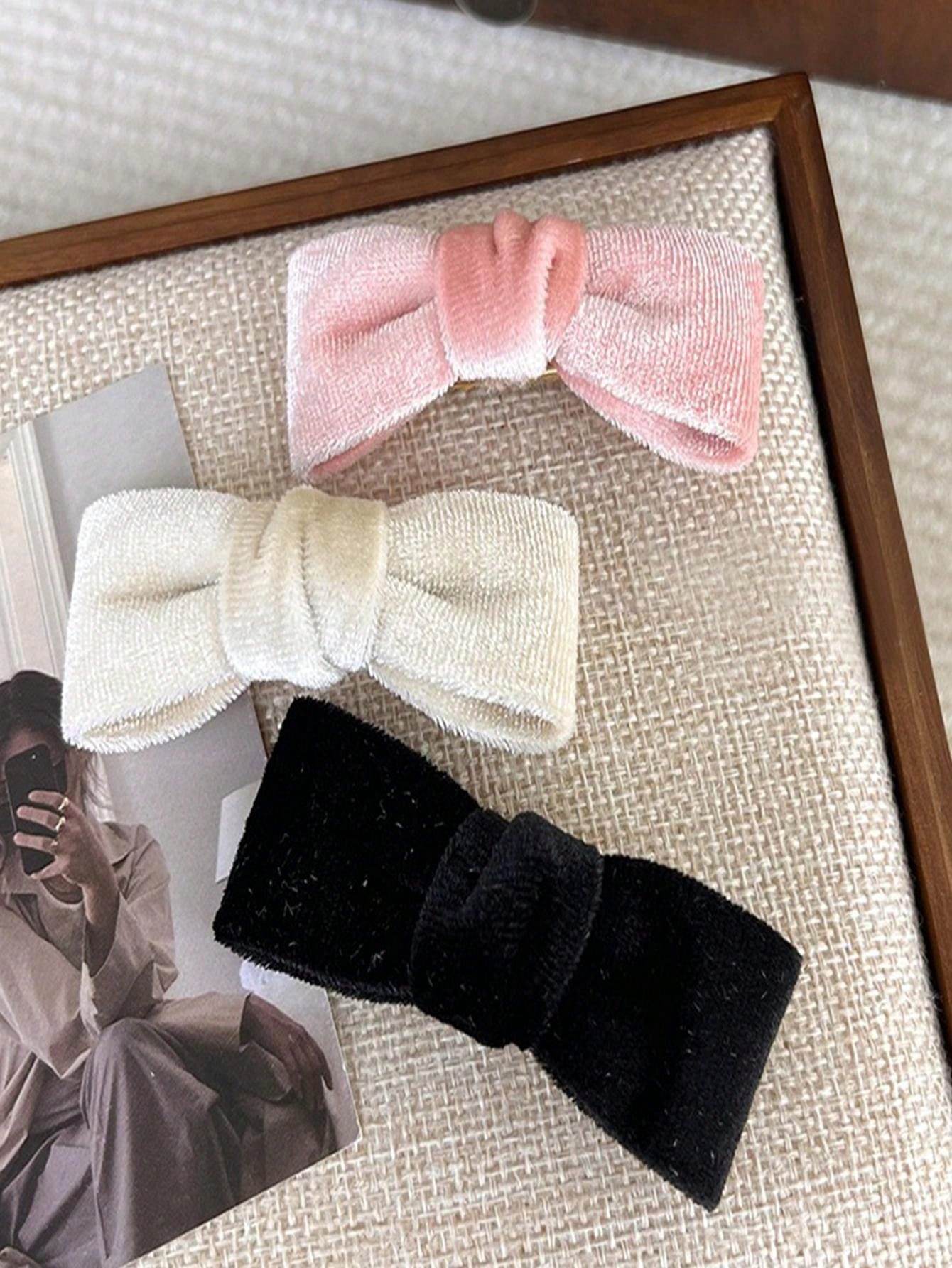 1pc Ladies' French Style Fresh And Sweet Retro Velvet Bow Hair Clip For Daily Life, Suitable For Sideways Bangs, Alligator Clips