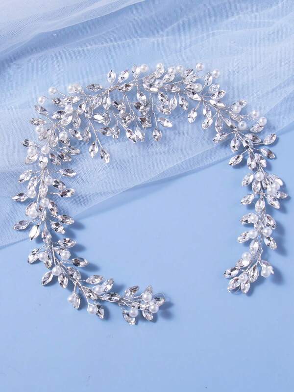1pc Ladies' Handmade Beaded Headband With Rhinestone & Pearls, Versatile Hair Accessory For Wedding