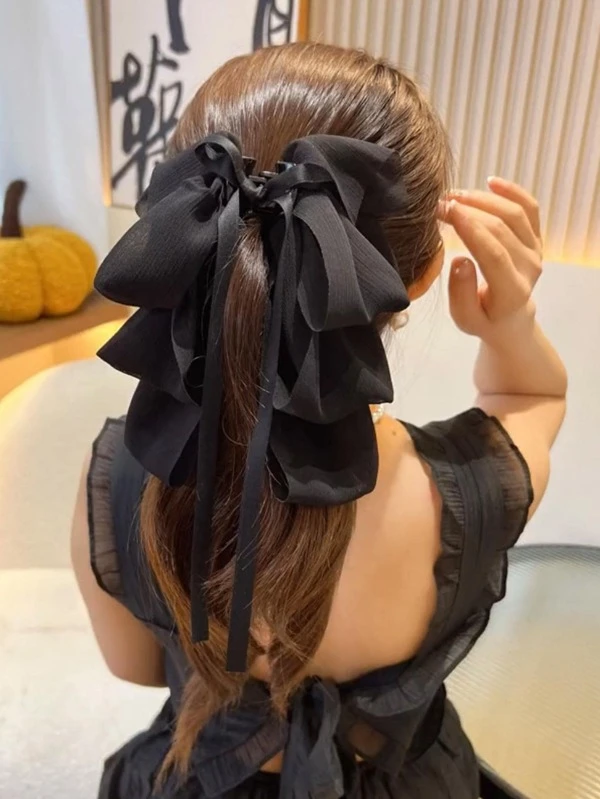 1pc Ladies' Mesh Ribbon Multi-layer Butterfly Bowknot Hair Clip With Streamers For Everyday Use