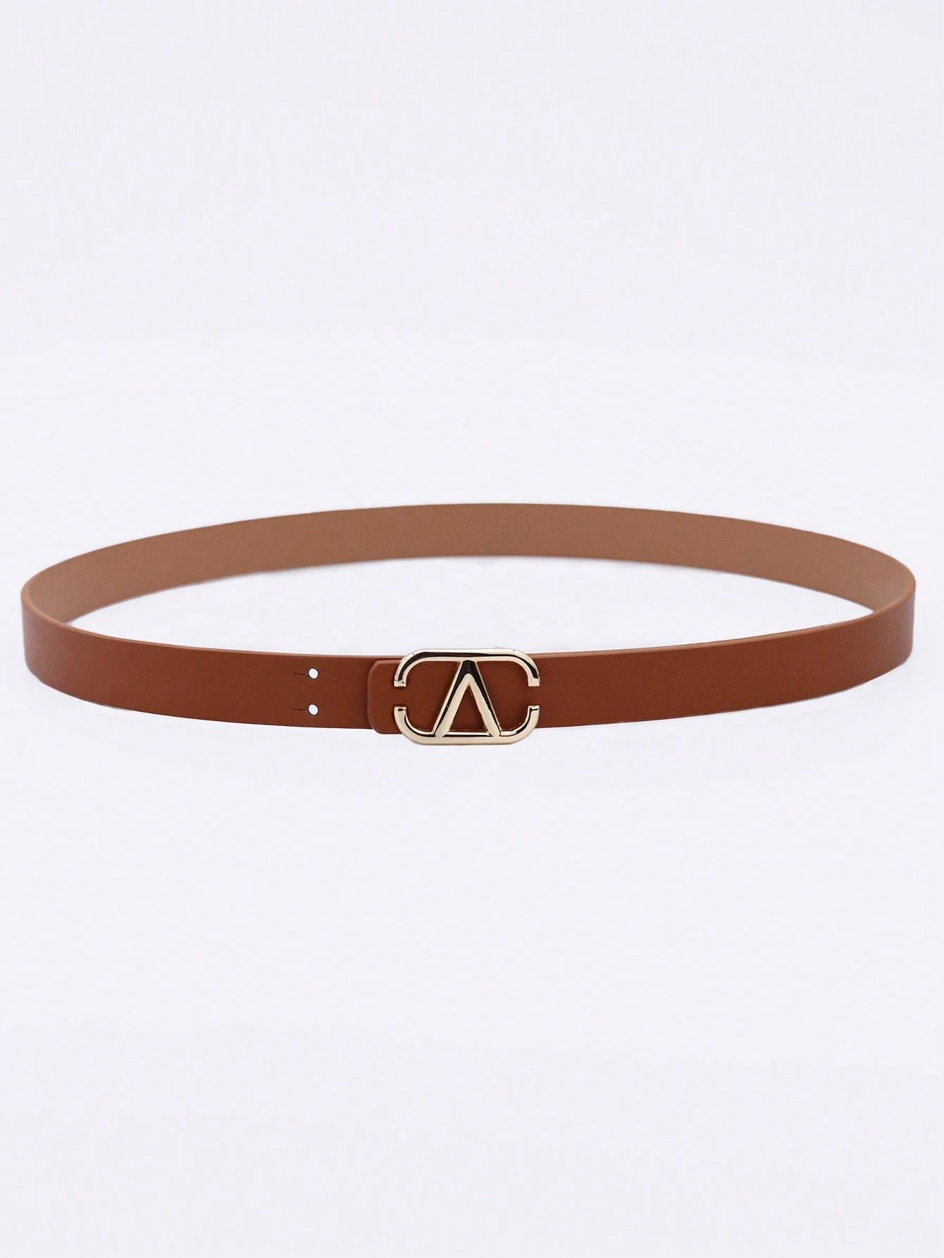 1pc Ladies' Multicolor Pu Belt With Letter Buckle, Versatile Fashionable Simple Waistband For Daily Use