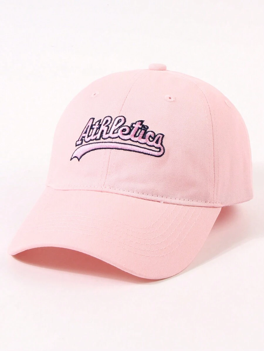 1pc Ladies' Pink Fashionable Letter Embroidered Baseball Cap, Perfect For Daily Use
