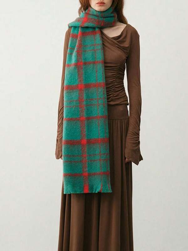1pc Ladies' Scarf, Simple, Cold Temperament, Atmosphere, Thick Plaid, Soft, Warm And Versatile, Autumn And Winter