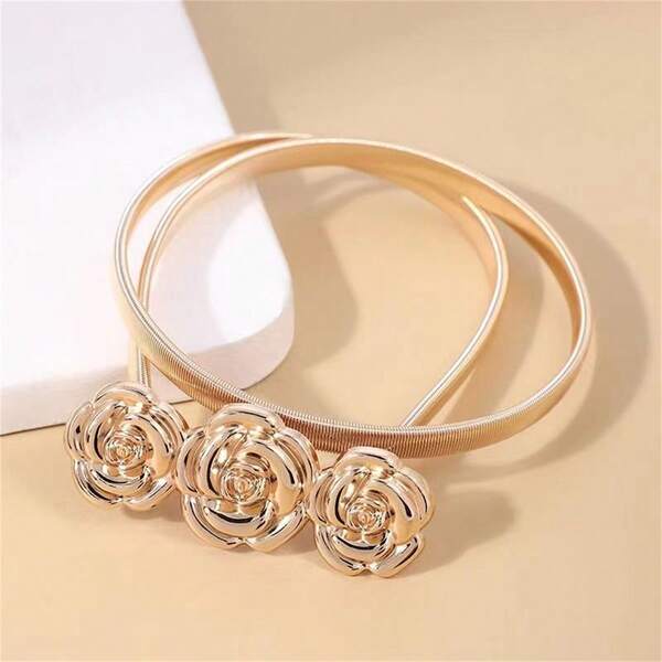 1pc Ladies' Simple & Fashionable Gold Metal Spring Elastic Thin Waist Chain
