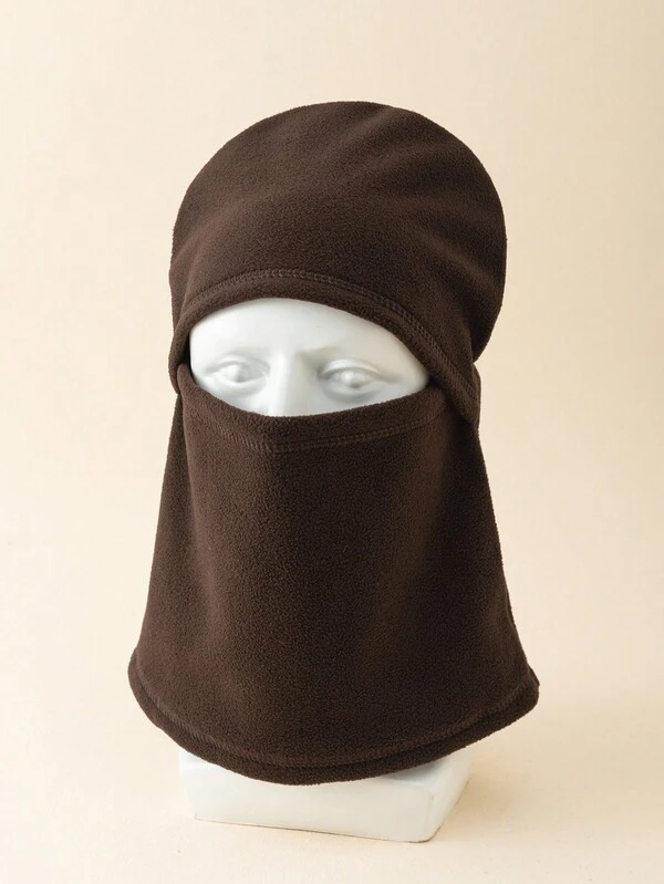 1pc Ladies' Solid Color Soft Fleece Windproof Neck Warmer Balaclava Hat For Traveling And Cycling