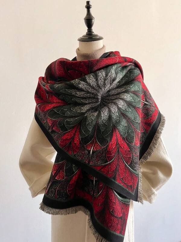 1pc Ladies' Vintage Oil Painting Inspired Jacquard Scarf With Flower Pattern, Thick & Warm, Perfect For Daily Wear In Autumn And Winter