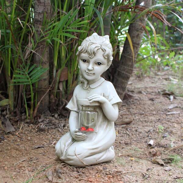 1pc Ladybug Girl Solar Light Resin Craft Garden Decoration