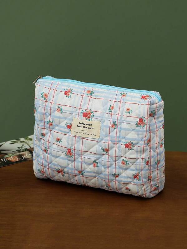 1pc Large Capacity Cambric Cartoon Flower Pattern Storage Bag, Cute Portable Cosmetic Bag For Traveling
