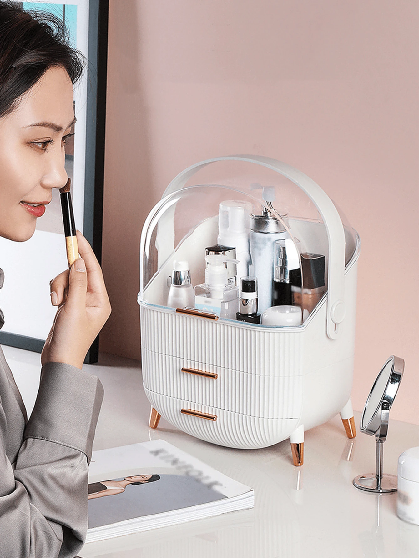 1pc Large Capacity Cosmetic Storage Box With Drawer-Dustproof Jewelry And Skin Care Products Rack For Bedroom Make Up Organization And Home Essentials