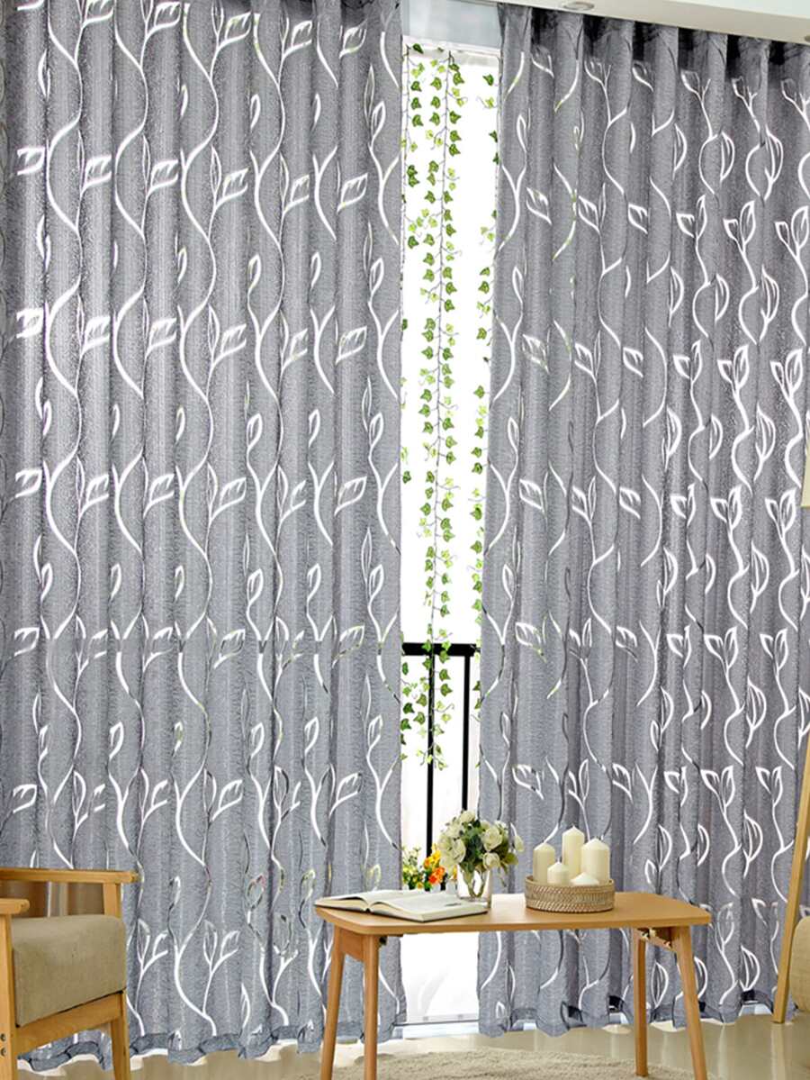 1pc Leaf Pattern Sheer Curtain, Modern Polyester Single Panel Sheer Curtain For Home