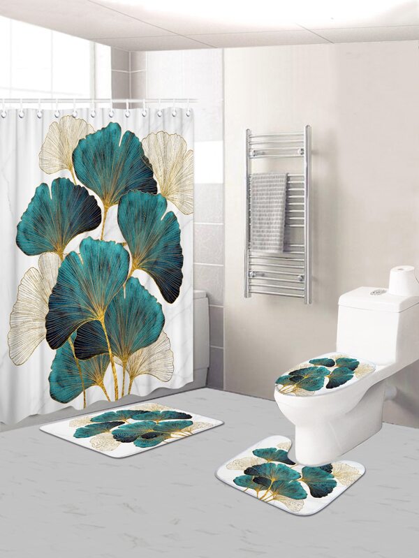 1pc Leaf Print Bath Rug Or 1pc Shower Curtain