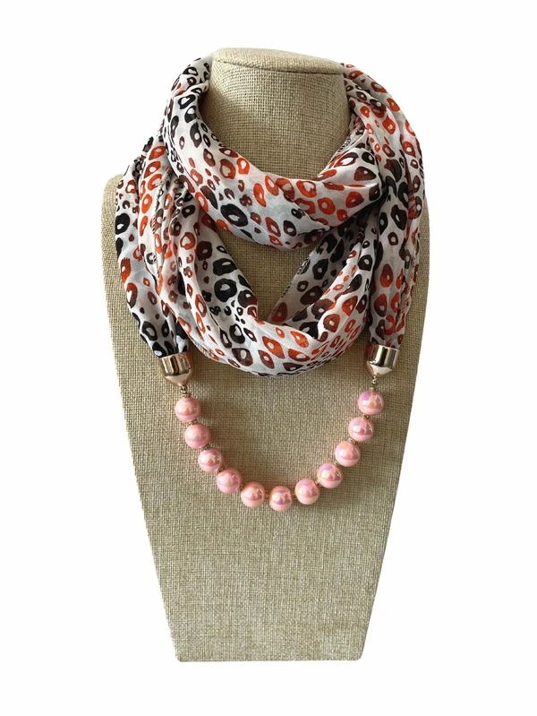 1pc Leopard Print Chiffon Scarf With Dual Color Beads & Acrylic Alloy Chain Decoration For Women, Daily Wear & Casual Matching