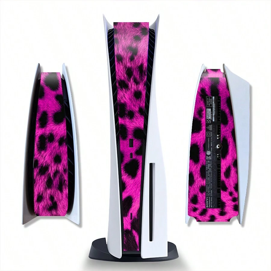 1pc Leopard Print Pink Pvc Protective Sticker For Ps5 Console And Controllers, Scratch Resistant Cover, Compatible With Ps5 Digital And Disc Version