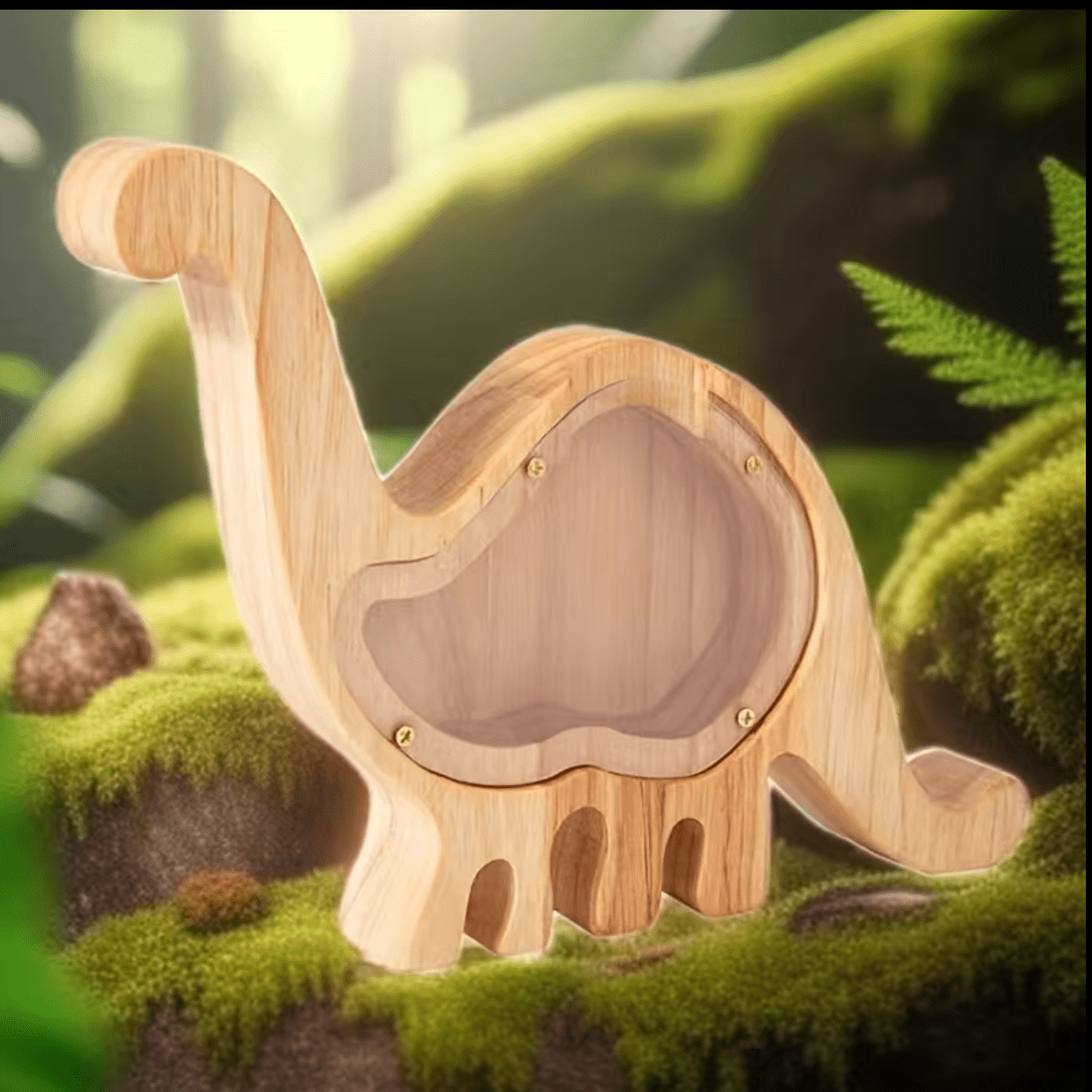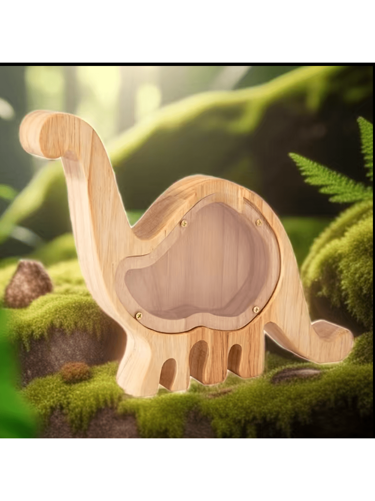 1pc Letter & Dinosaur & Giraffe Shaped Wooden Money Box With Transparent Acrylic & Animal Pattern On It As Decorative Ornament