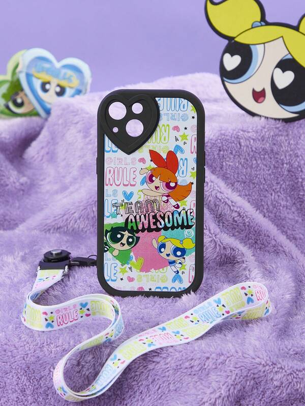 The Powerpuff Girls | ROMWE 1pc Letter Cartoon Graphic TPU Phone Case With Lanyard For Iphone