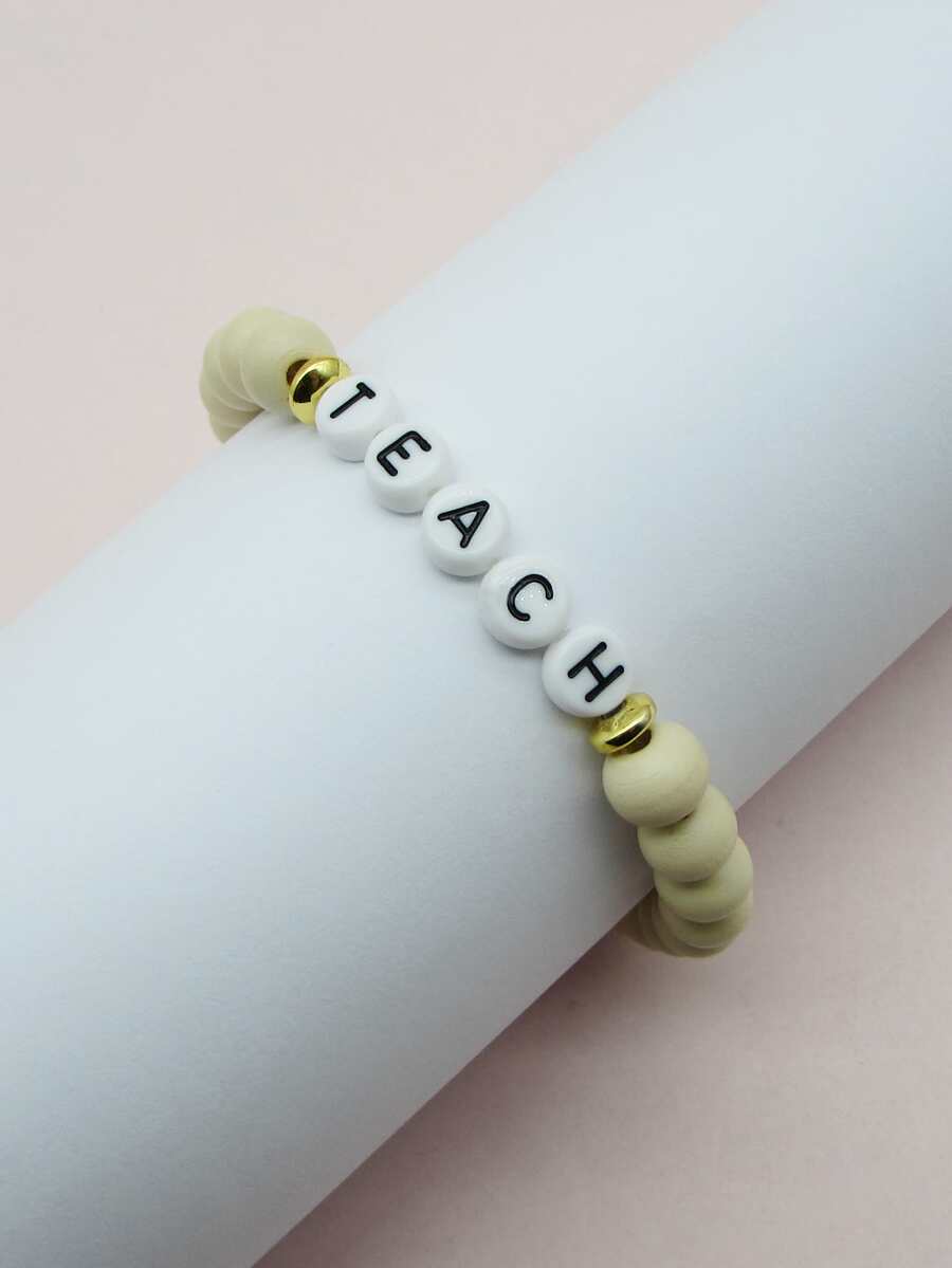 1pc Letter Teach Detail Wooden Beaded Bracelet