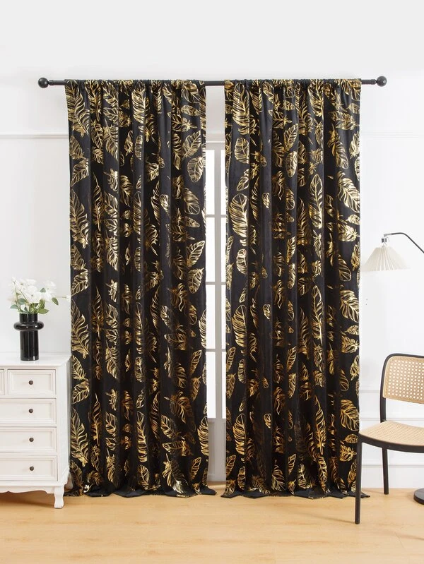 1pc Light Luxury Feather Pattern Thermal Foil Printed Perforated Curtains