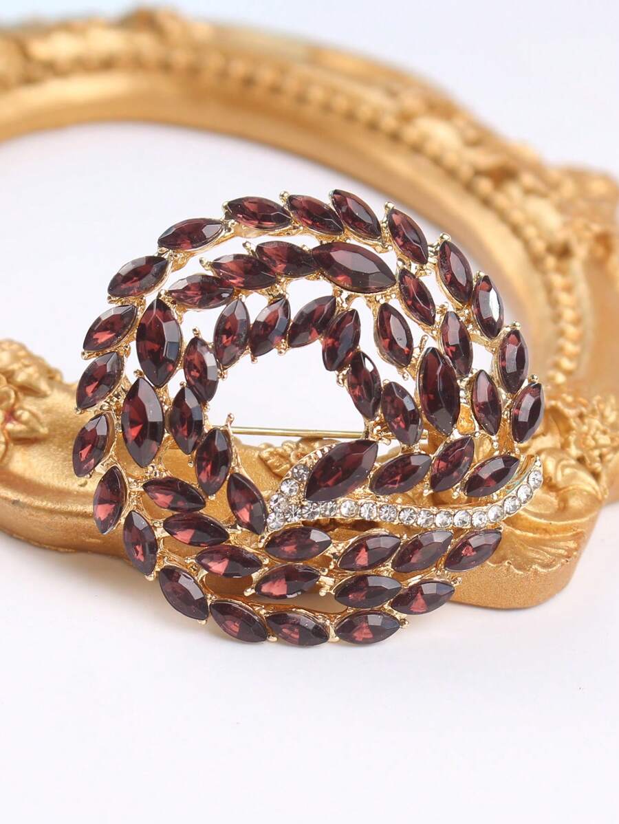 1pc Light Luxury Style Simple Glass Champagne Colored Flower Circle Brooch, Suitable For Party Accessory