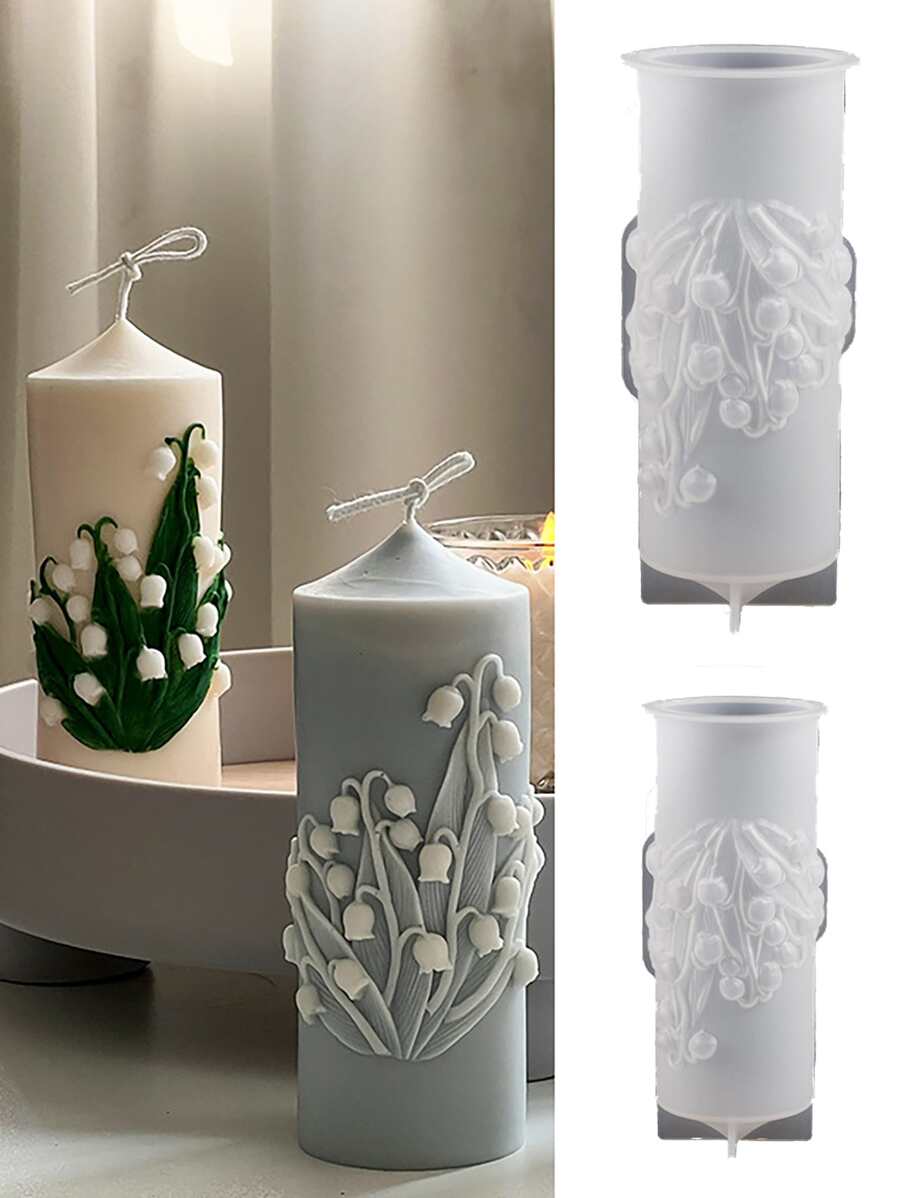 1pc Lily Flower Cylinder Aromatherapy Candle Silicone Mold For Decorative Items, Gypsum And Resin Mold