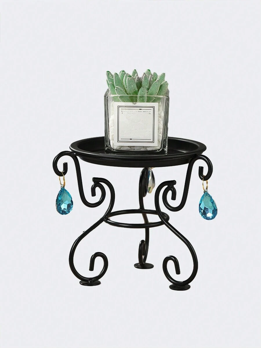 1pc Living Room Iron Storage Rack, Black Seamless Welding Paint Process Decorative Flower Stand