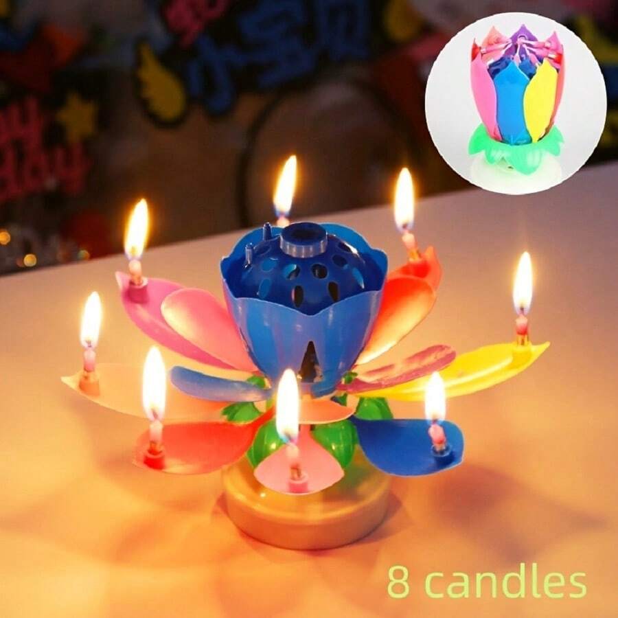 1pc Lotus Candle, Rotating Musical Flower Cake Candle For Birthday