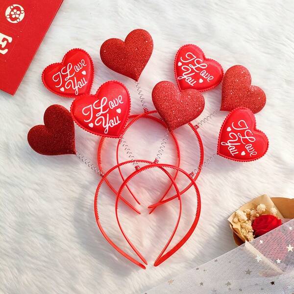 1pc Love Heart Shaped 3d Red Headband For Valentine'S Day Party Hair Decoration, Gift For Girls, Boys, Couples