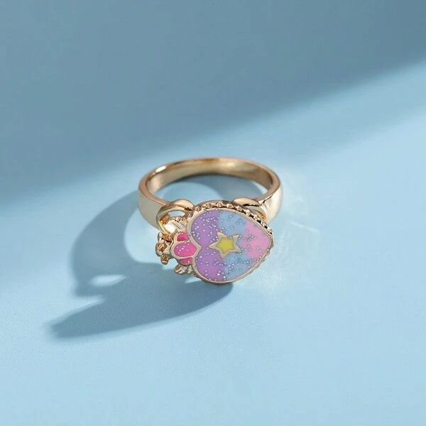 1pc Lovely Macaron Color Liquid Oil, Paint, Gradient Crown & Heart Shaped Fidget Ring, Birthday Gift, Daily Wear