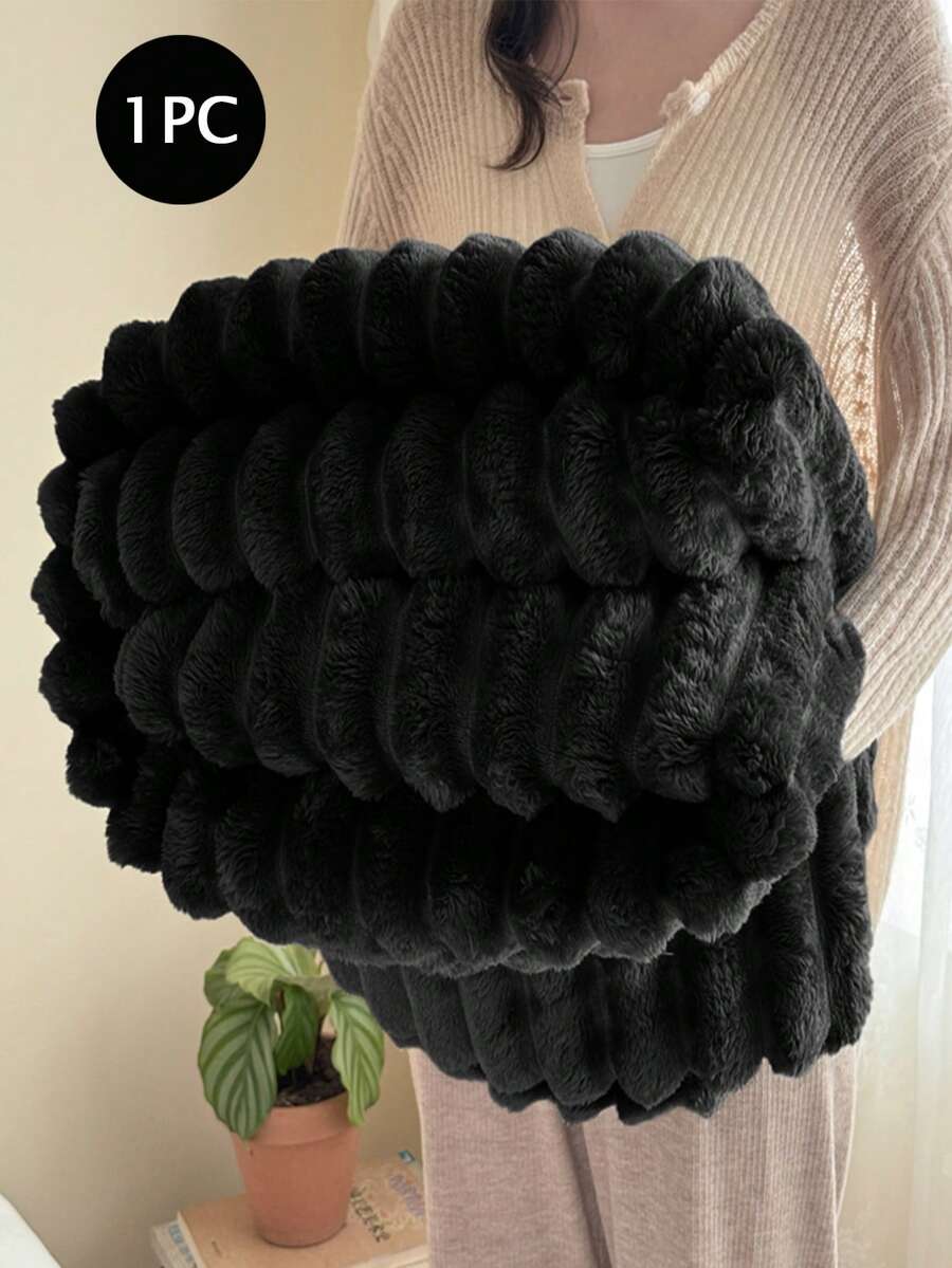 1pc Luxurious Dual-Sided Faux Rabbit Fur Throw Blanket - Cozy Striped Flannel, Soft & Warm For Naps, Office, Camping, Sofa - Versatile Polyester Bed Cover, Perfect Christmas Gift,Moderate Thickness, Suitable For All Seasons