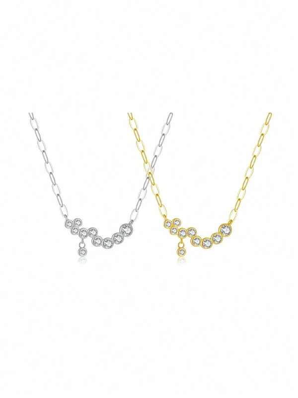 1pc Luxurious Fashionable 925 Sterling Silver Irregular Cubic Zirconia Pendant Long Chain Necklace For Women, Perfect For Parties, Birthday Or Valentine's Day Gift