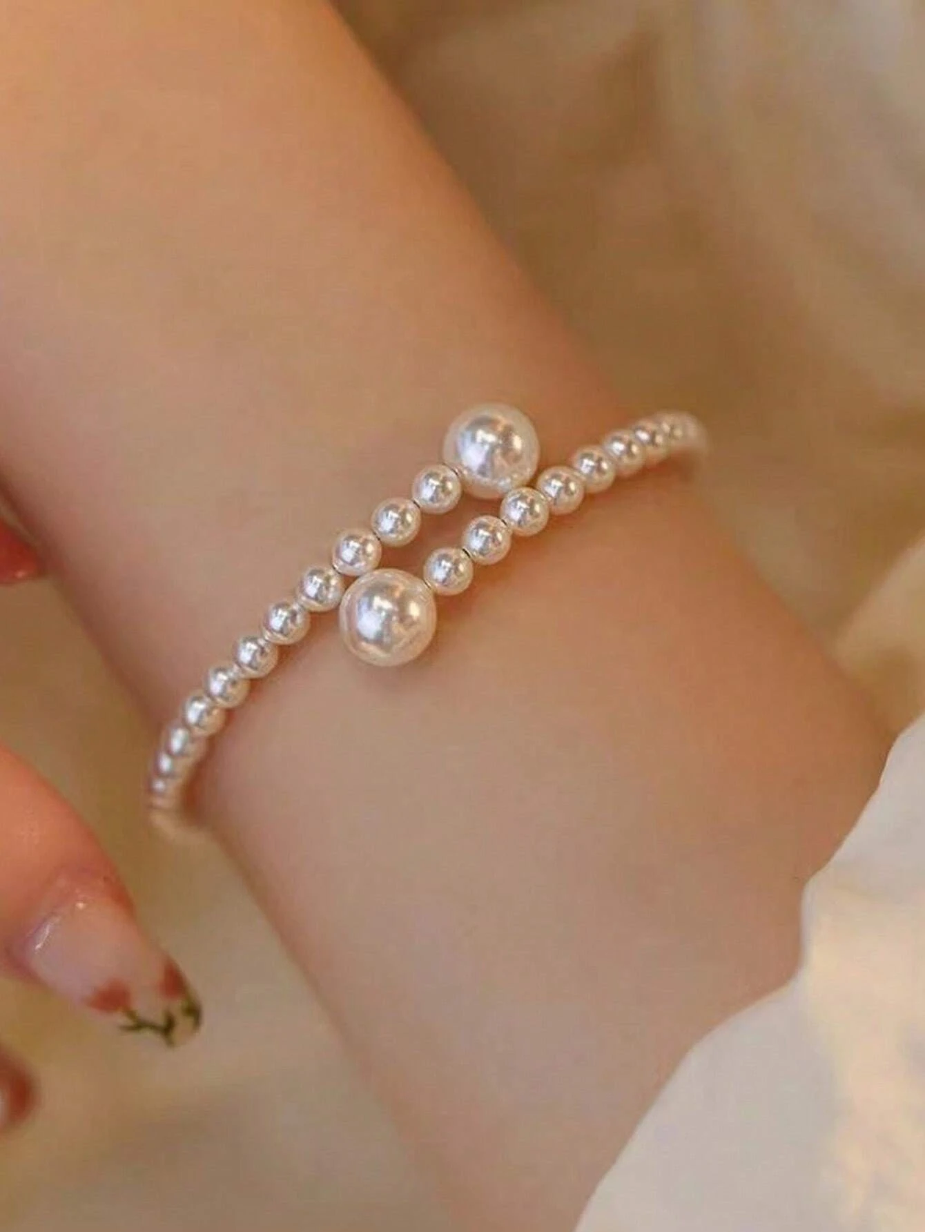 1pc Luxurious Noble Lady Style Faux Pearl Bangle With French Retro Design And Simple Versatility