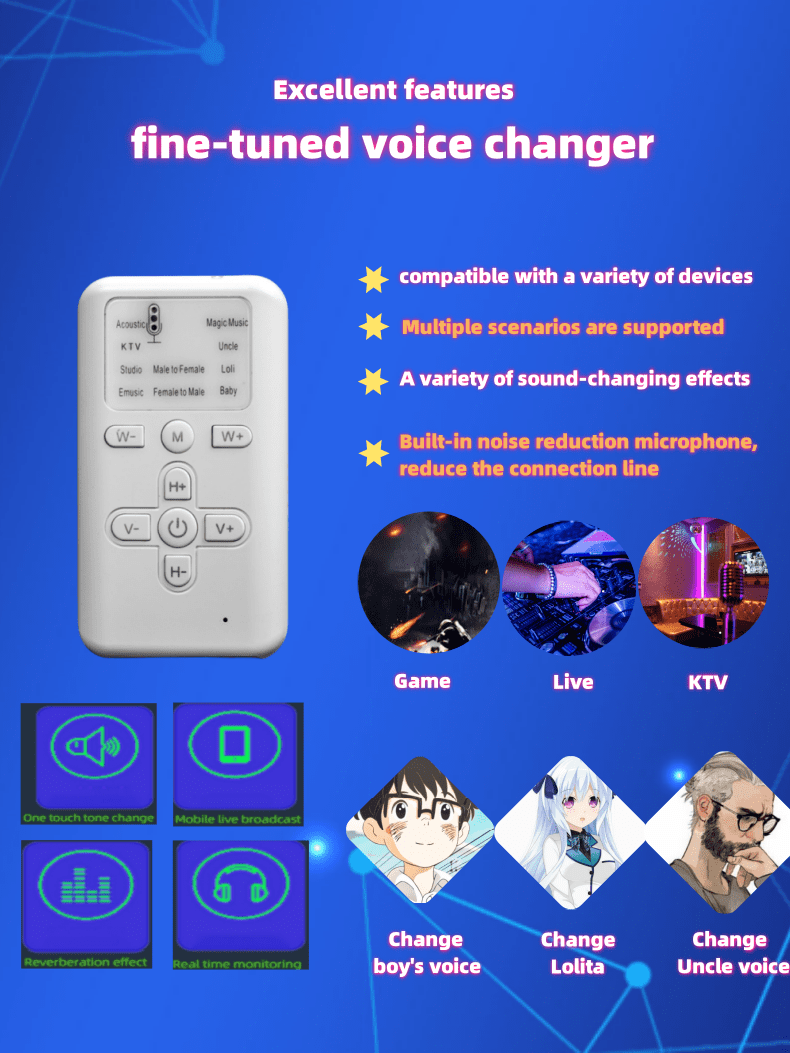 1pc M11 Mobile Entertainment Voice Changer With Real-Time Voice Changing Function, Built-In Noise Cancelling Microphone, Comes With 1pc Non-Microphone Monitor Earphone, 1pc Charging Cable And 1pc Connection Cable. This Voice Changer Can Switch Between Male And Female Voice, Turn Voices To Senior Or Younger Sound, Can Be Used For Game Or Phone Voice Changing.