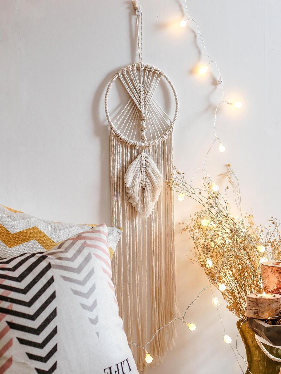 1pc Macrame Wall Hanging,White Boho Woven Wall Hanging Tapestry,Handcrafted Woven Leaves and Tassel Wall Decor for Living Room Bedroom Dorm Baby Nursery Room Wedding Decoration,Idea Gift
