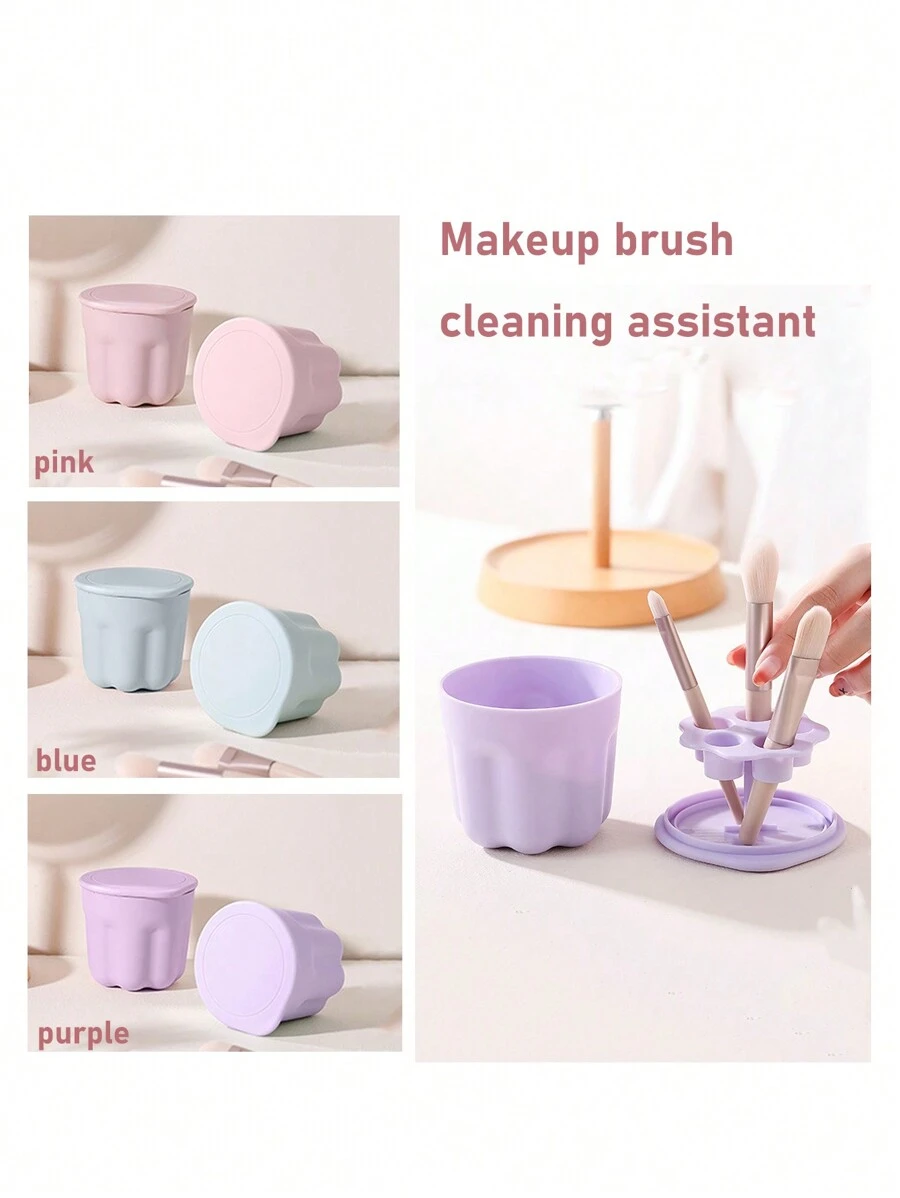 1pc Makeup Brush Cleaning Drying Tool All In One Brush Cleaner With Silicone Mat, Non-Damage, Brush Drying Rack Included
