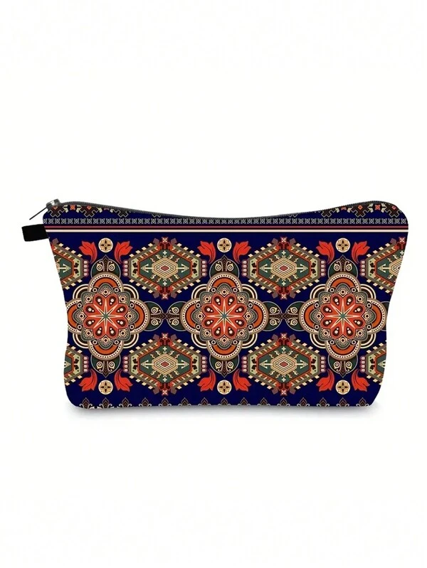 1pc Mandala Pattern Zippered Storage Bag, Portable Clutch Makeup Bag