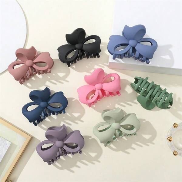 1pc Matte Finish Ladies Bow Jaw Clip With Shark Hair Pins & Back Head Clip Elegant Hair Accessory