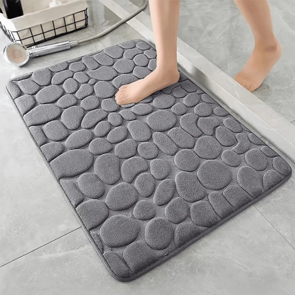 1pc Memory Foam Bath Rug, Cobblestone Embossed Bathroom Mat, Rapid Water Absorbent And Washable Bath Rugs, Non-Slip, Thick, Soft And Comfortable Carpet For Shower Room, Bathroom Accessories