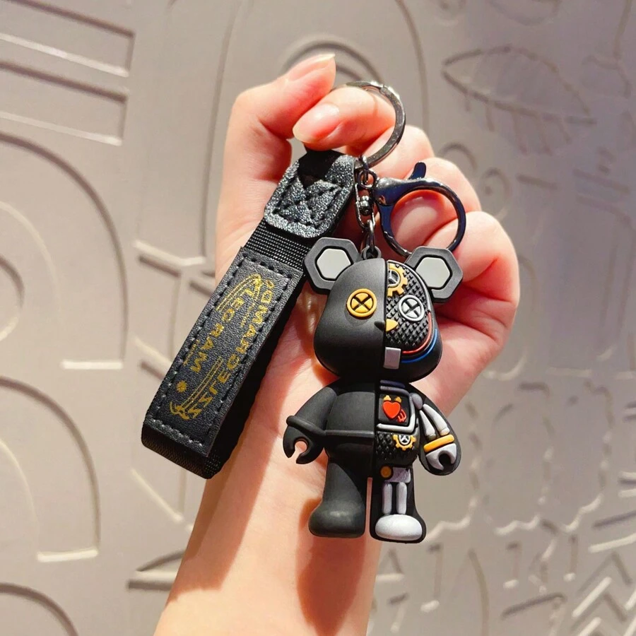 1pc Men'S Black Creative Mechanical Bear Keychain Personality Car Key Chain, Couple Backpack Decor Gift