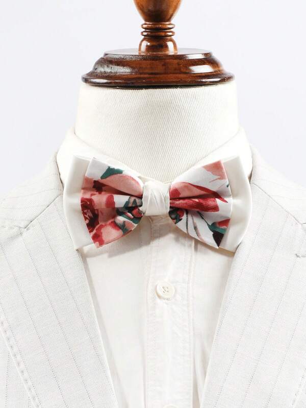 1pc Men'S Elegant Floral Pattern Double-Layered Beige Cravat For Formal And Daily Suits