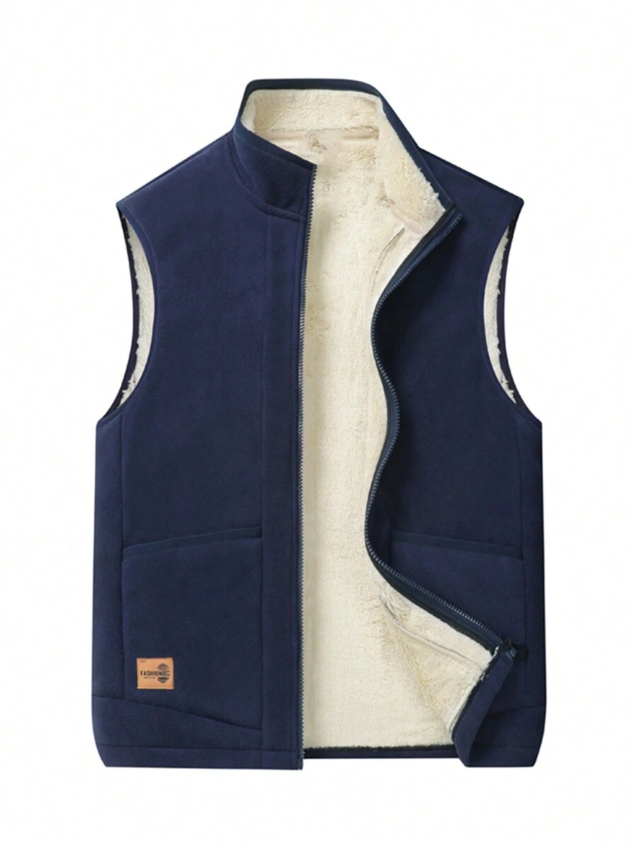 1pc Men'S Outdoor Hiking Warm Fleece Vest Jacket With Sherpa Lining