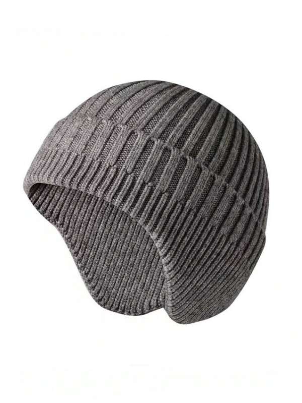 1pc Men'S Plain Knitted Hat, Soft, Warm, Double Layer, Stylish, Casual, Winter, Outdoor Sports, Riding, Travel, Headwear, Wool Hat, Suitable For Everyday Wear