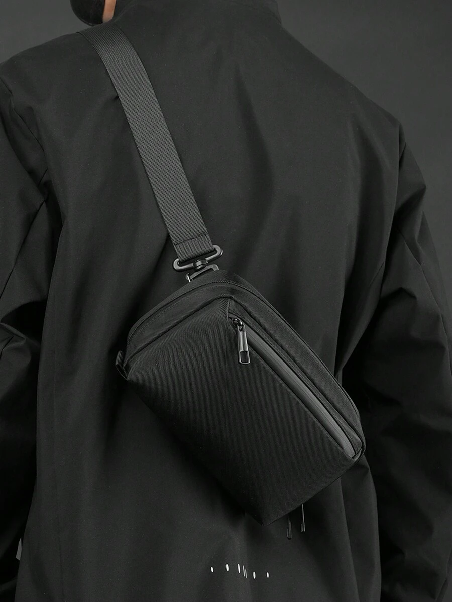 1pc Men'S Polyester Fiber Chest Bag Waist Bag, Black, Simple & Fashionable Zipper Design, Convenient For Traveling, Dating And School Fanny Pack Sling Bag Black Bag Sport Bag For Business Gift For Husband Dad Gift Valentines Gift For Men