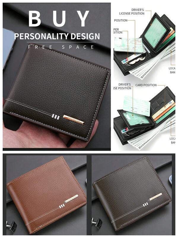 1pc Men'S Short Wallet, Mens Wallet, Small Wallet For Men, High-End Youth Lychee Patterned Zipper Coin Purse, Stylish Thin Short Multi-Function ID Credit Card Holder Money Bag, Slim Wallet For Men, Men'S Business Wallet, Give Gifts To Men On Valentine'S Day